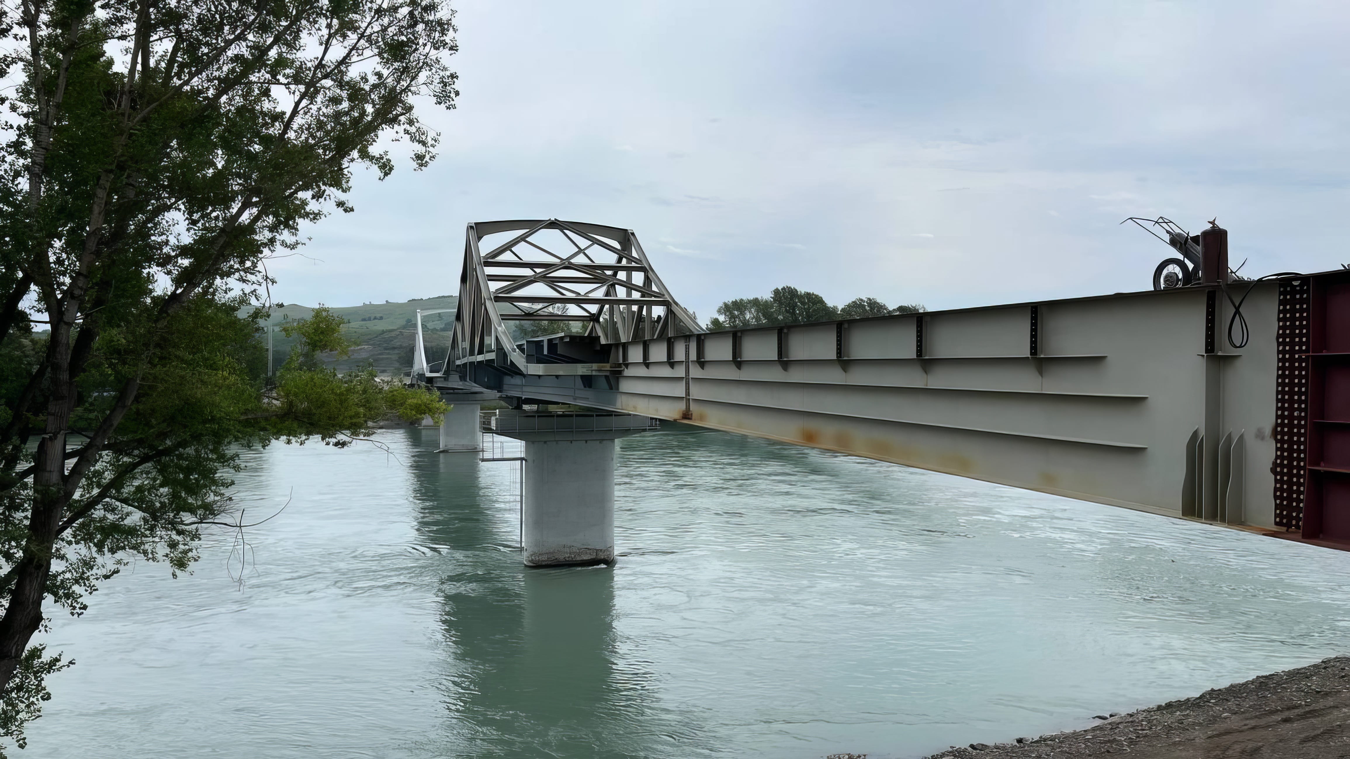 На данный момент строительная готовность объекта составляет 87 %. Здесь уже завершены работы по устройству металлического пролетного строения, устроено земляное полотно на подходах, выполнены работы по укреплению насыпи.